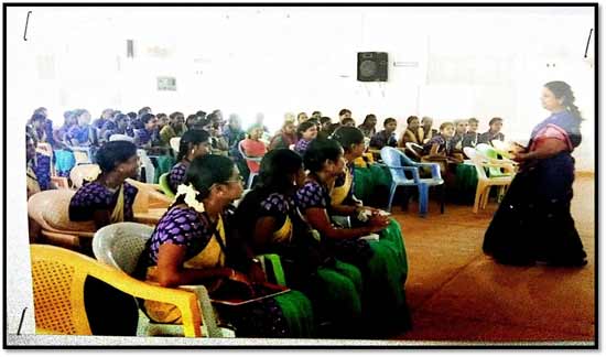 Mrs. B.Rebekka, ICTC Counsellor, Karaikudi explained how to protect the child from HIV affected mother and what are the steps to be taken to prevent and conduct HIV Test. HIV infected mothers can get counseling and free medicines from ICTC. ICTC counsellor cleared all the doubts of the students about HIV and AIDS. Students interacted with the chief guest enthusiastically.